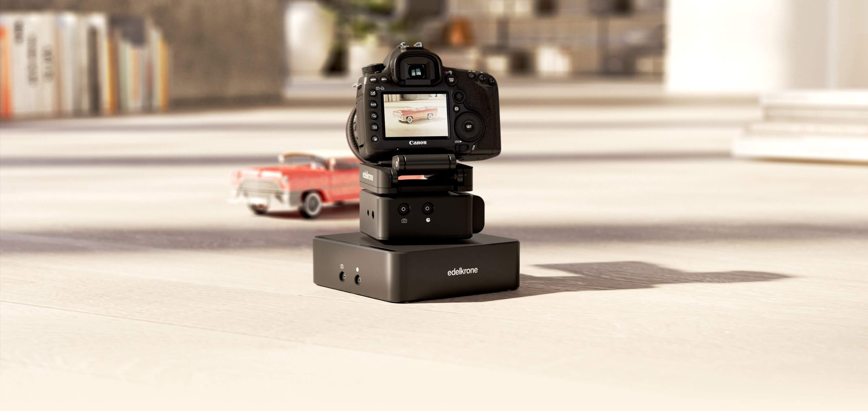 Ultra portable, motorized table-top dolly to create linear or curved camera motions on flat surfaces + wireless connectivity with edelkrone motorized heads.