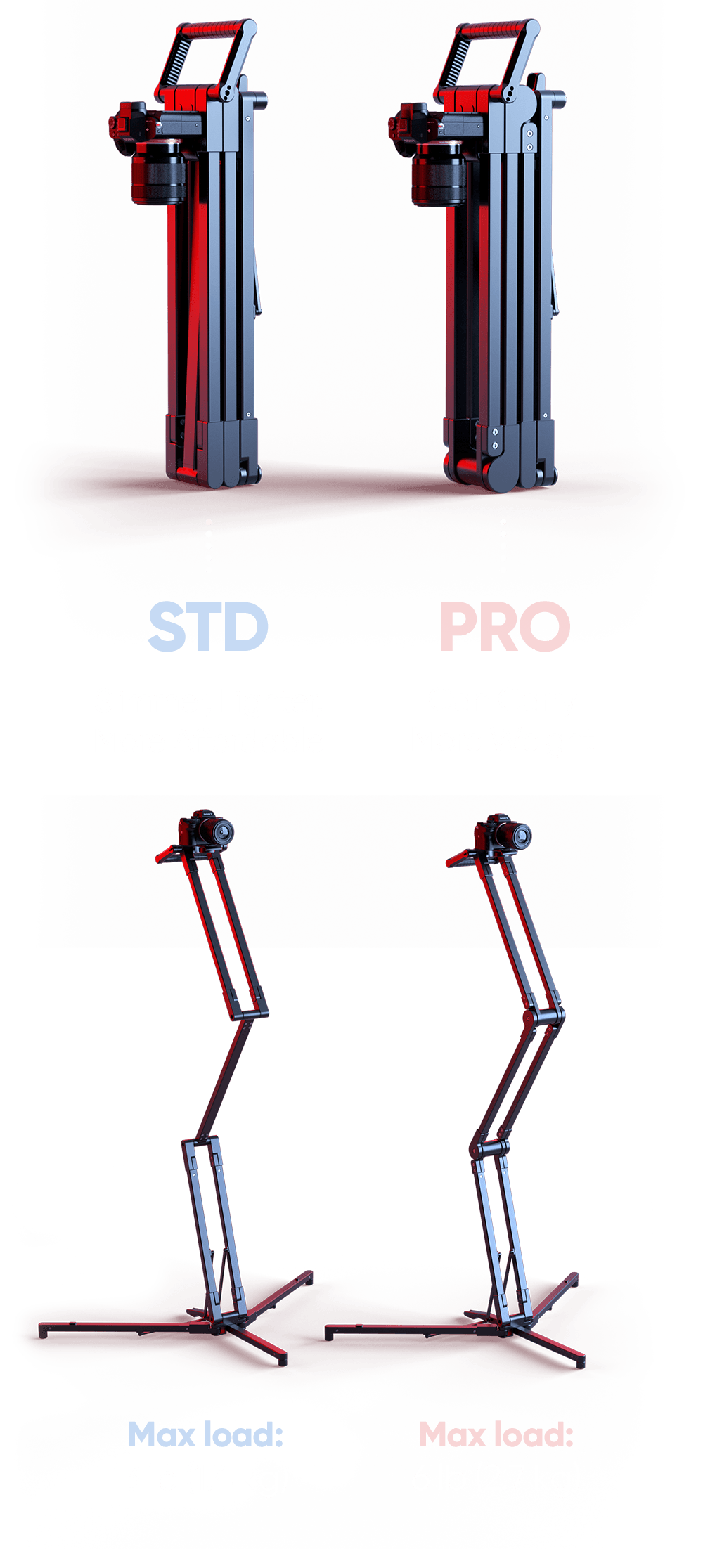 The 'STANDARD' model is slimmer, lighter, and more affordable, while the 'PRO' model can carry more weight. All other features remain the same.